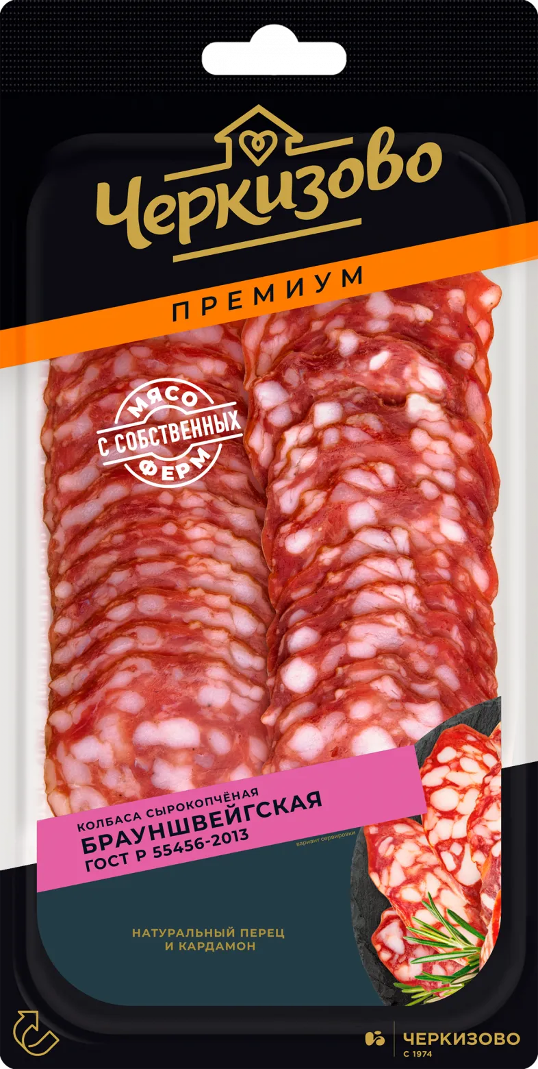 Колбаса (нарезка) Брауншвейгская Гост сырокопченая (газ/уп) 85г/1шт «Черкизово»
